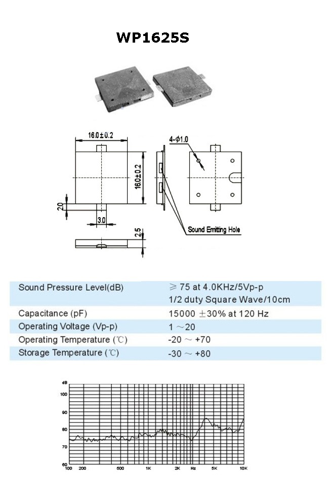 Sound Output at 10cm | ≥75dB at 4.0Khz / 5V p-p 1/2 duty square wave/10cm |